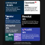 - Covalto (15.50%): Es la tasa más alta del mercado actualmente para plazos fijos.